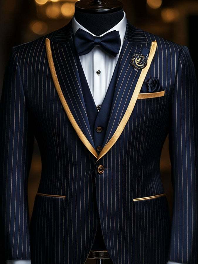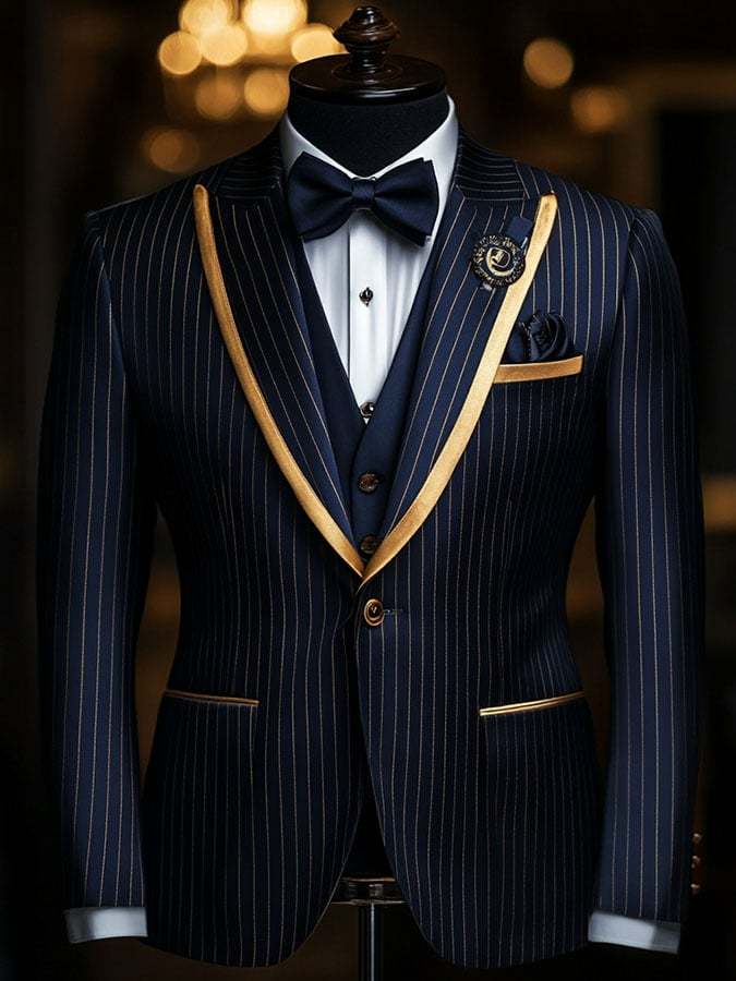 Men'S Casual Classic Business Striped Long-Sleeved Suit