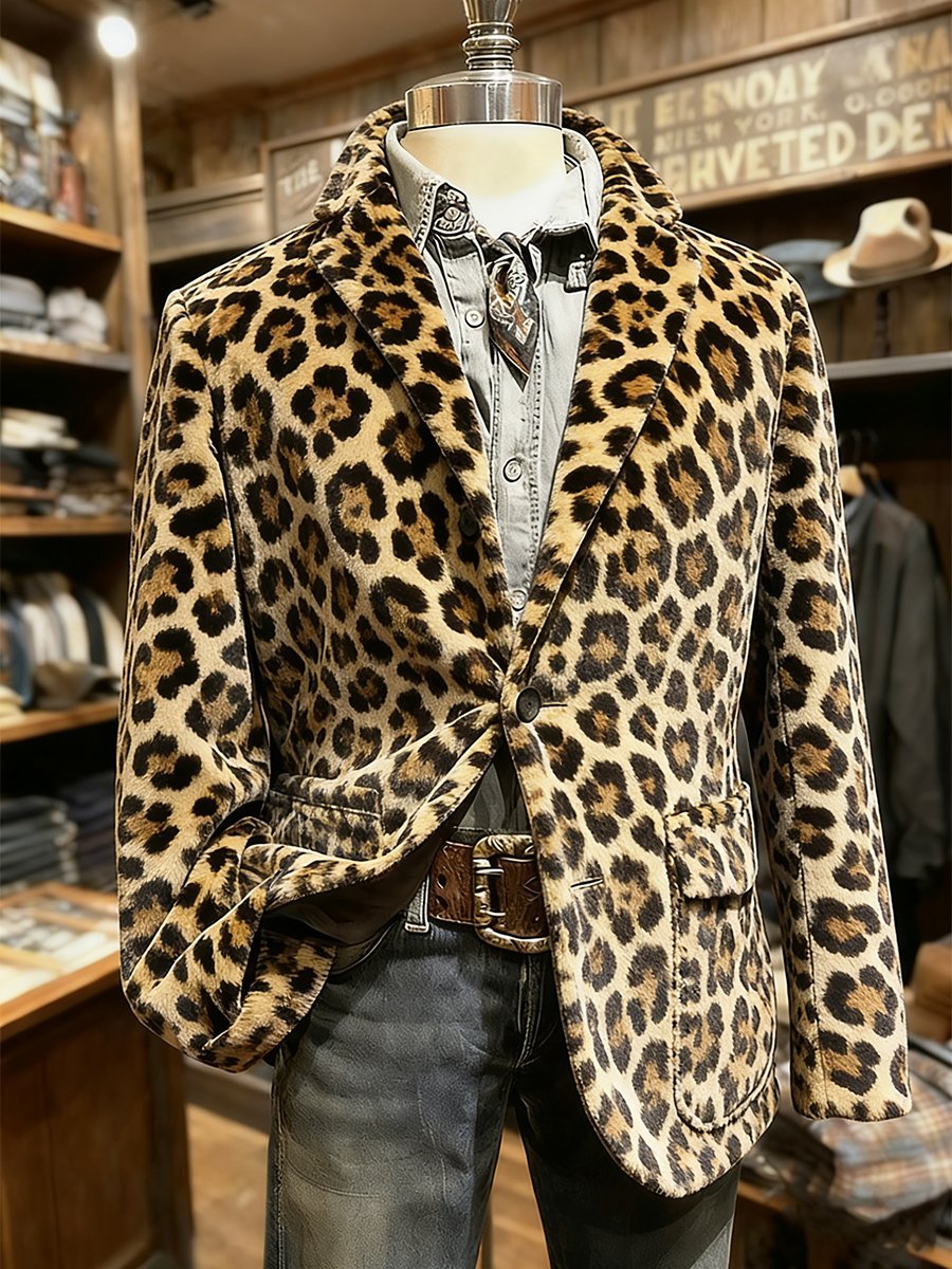 Men's Leopard Print Flannel Collar Casual Jacket