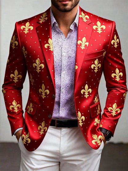 Luxury Mardi Gras Printed Suit Jacket for Men