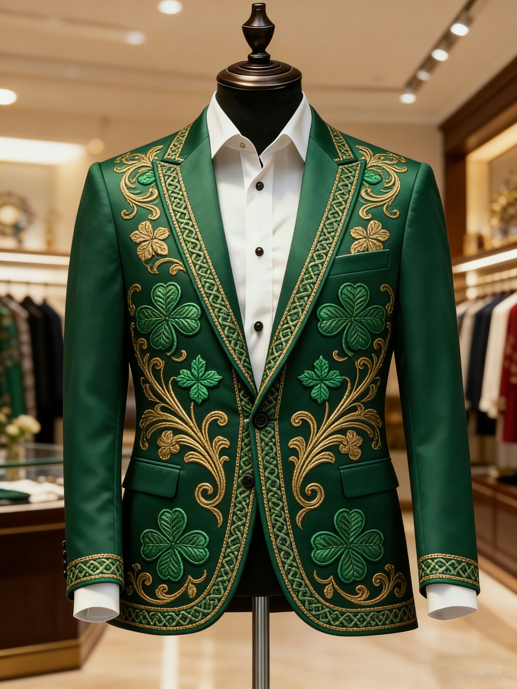 Men's Casual Notch Lapel Lucky Celtic knots Shamrock St Patrick's Day Green Print Blazers