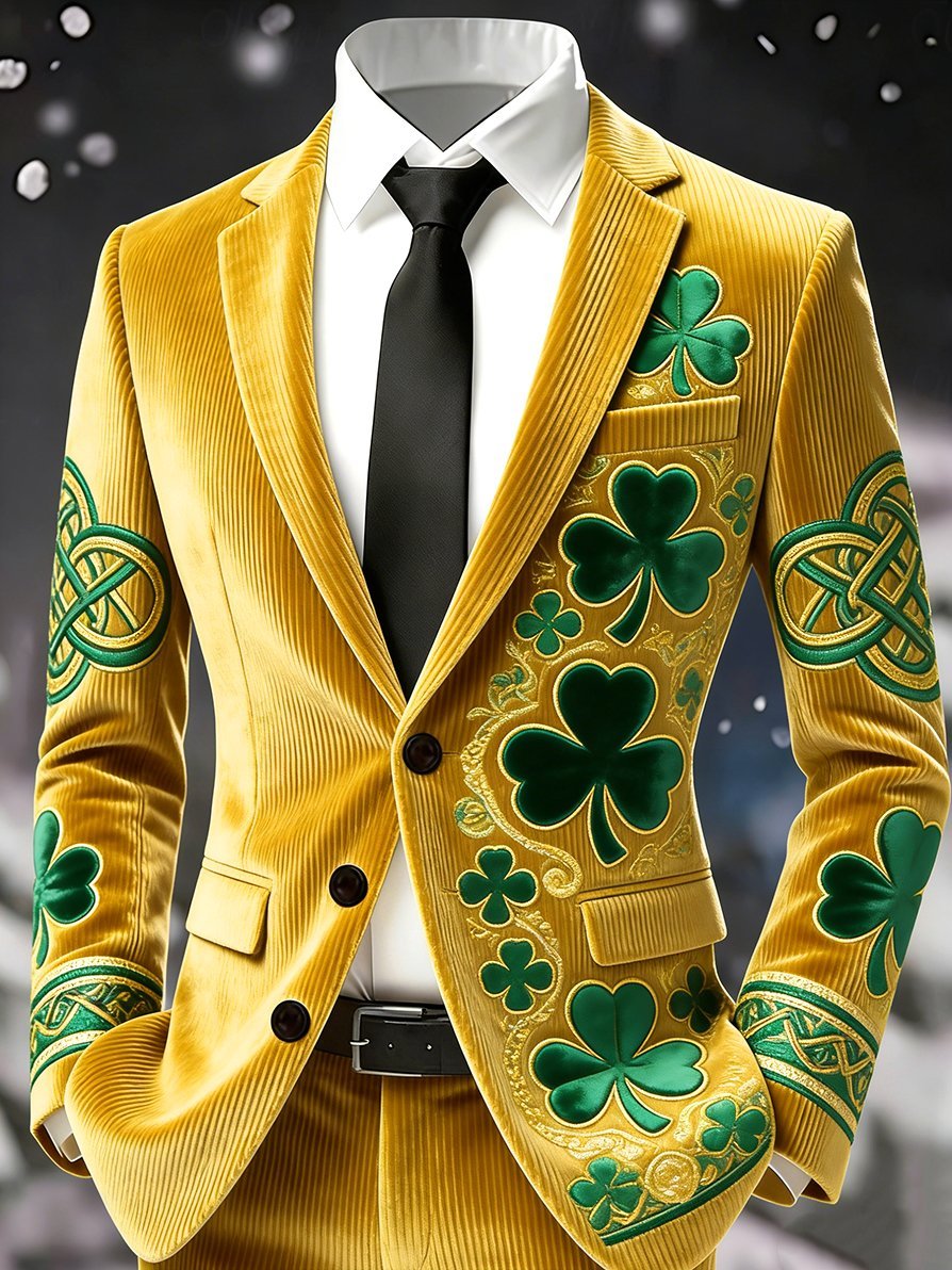 Men's Vintage Lucky St. Patrick's Day Party Corduroy Suit Jacket