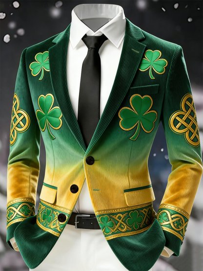 Men's Vintage Lucky St. Patrick's Day Party Corduroy Suit Jacket