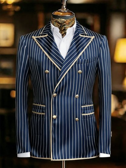 Men's Vintage Striped Blue Suit Jacket