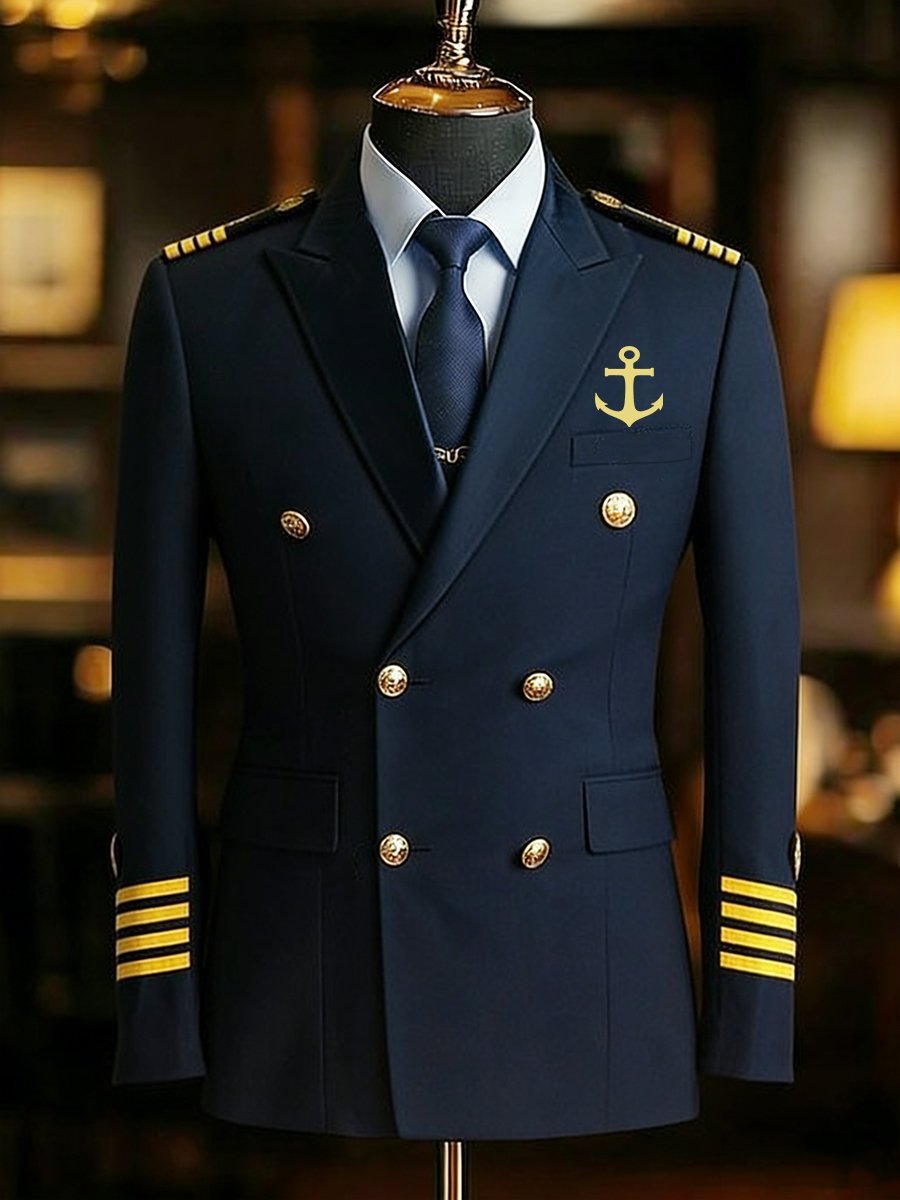 Men's Vintage Commemorative Navy Blue Suit Jacket