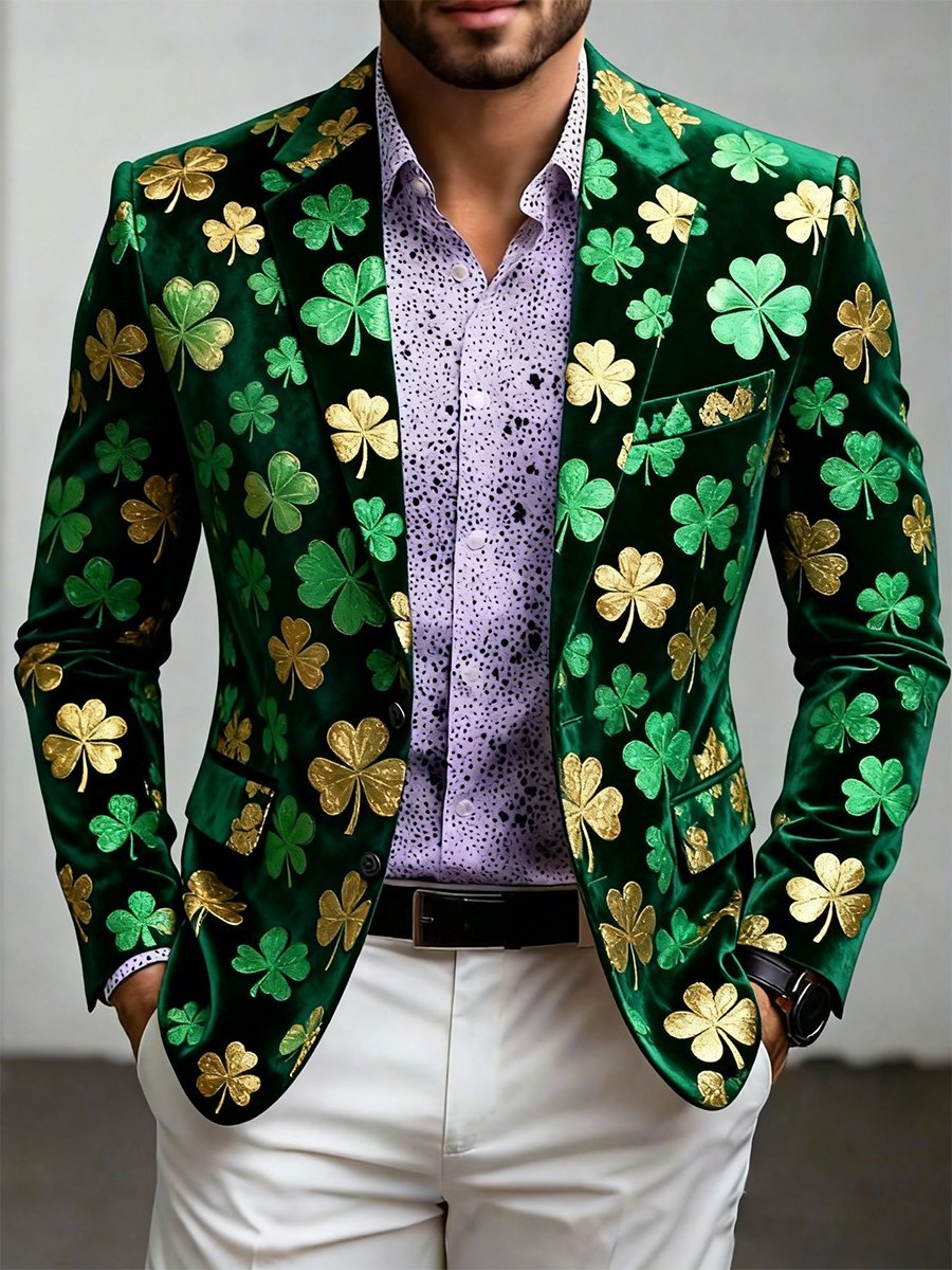 Men's Luxury St. Patrick's Day Print Suit Jacket