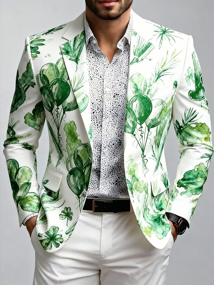 Men's Luxury St. Patrick's Day Balloon Print Suit Jacket