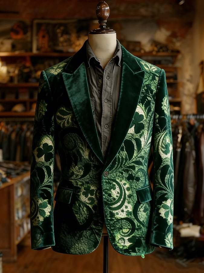 Men's Retro St. Patrick's Day Velvet Casual Suit Jacket