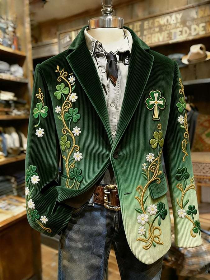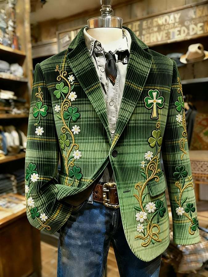 Men's St. Patrick's Day Clover Plaid Suit Jacket