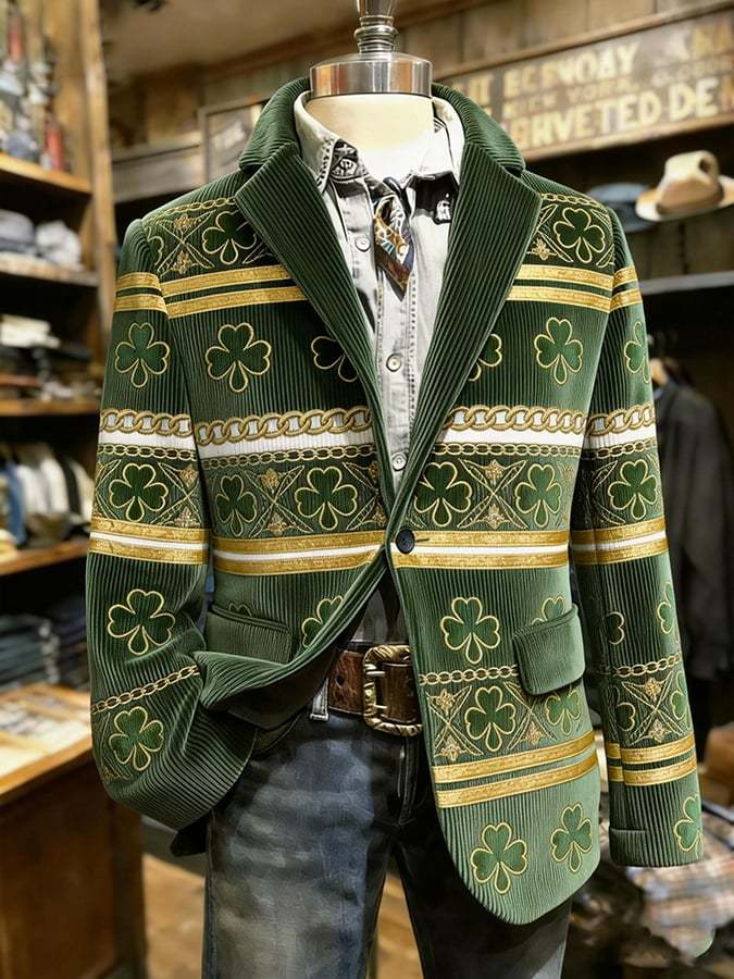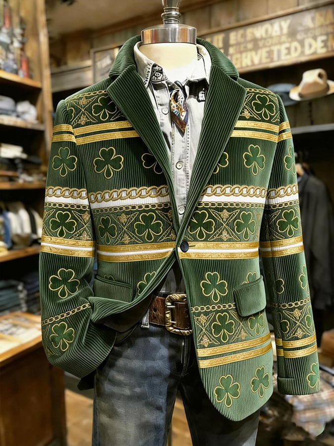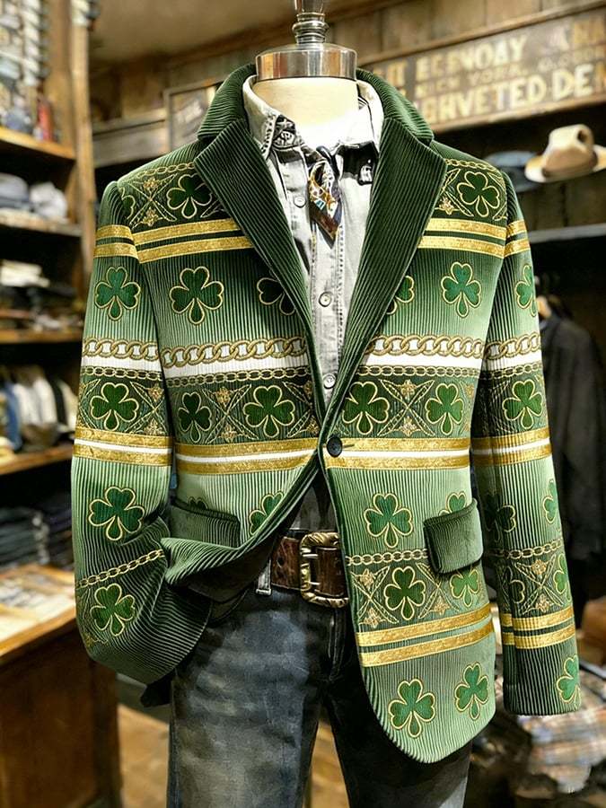 Men's St. Patrick's Day Clover Plaid Suit Jacket