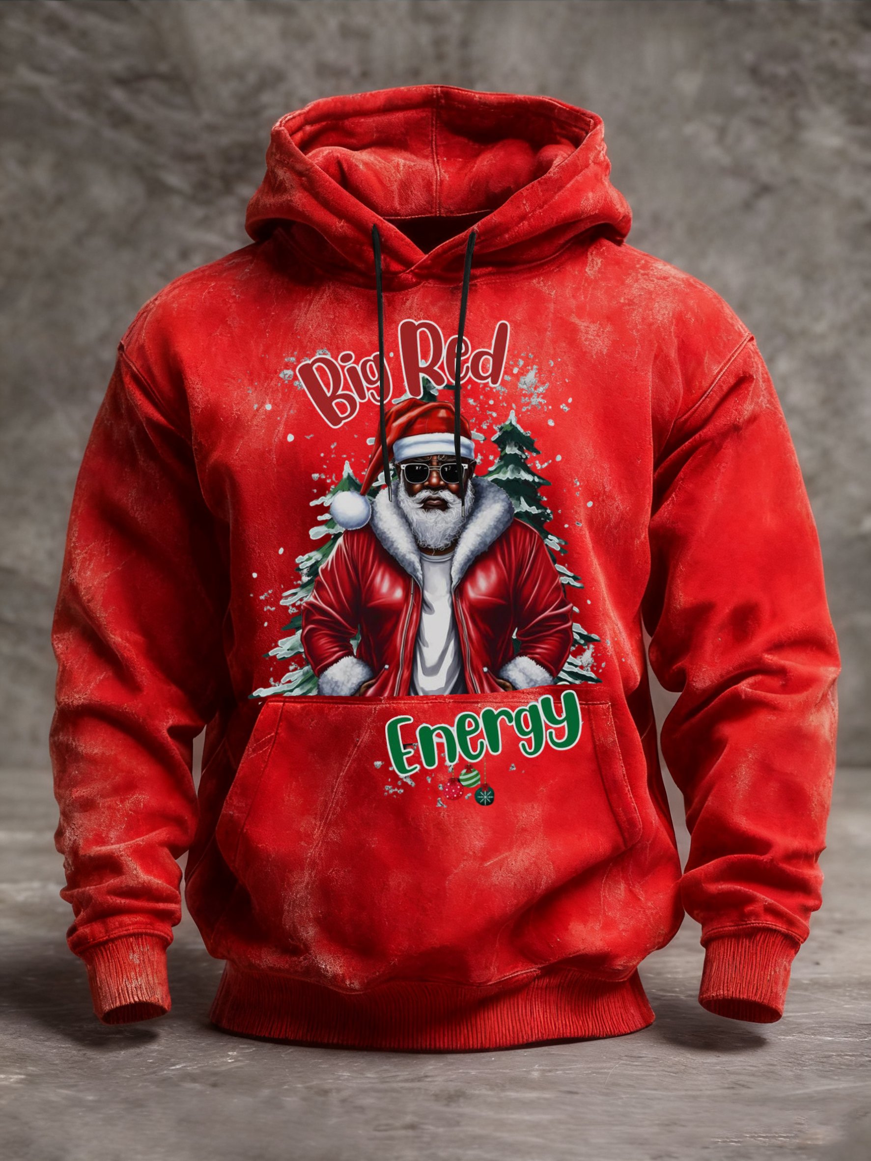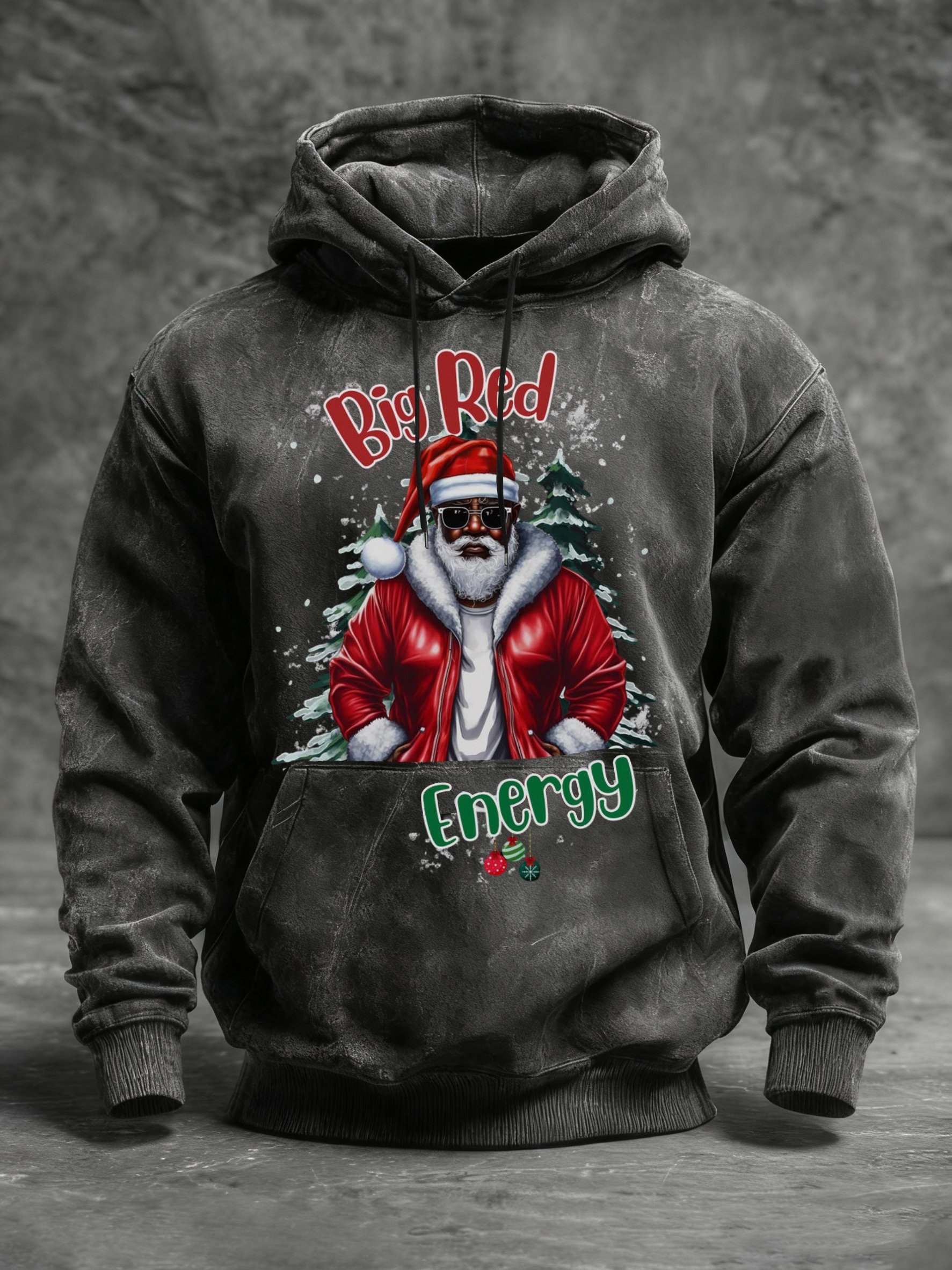 Men's African American Christmas Print Crew Neck Hooded Sweatshirt