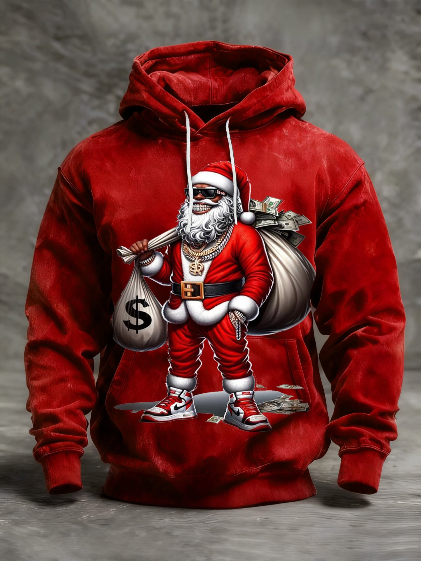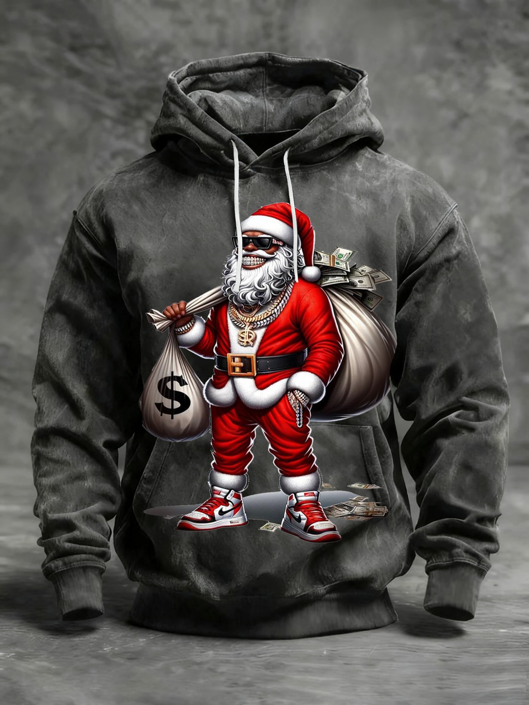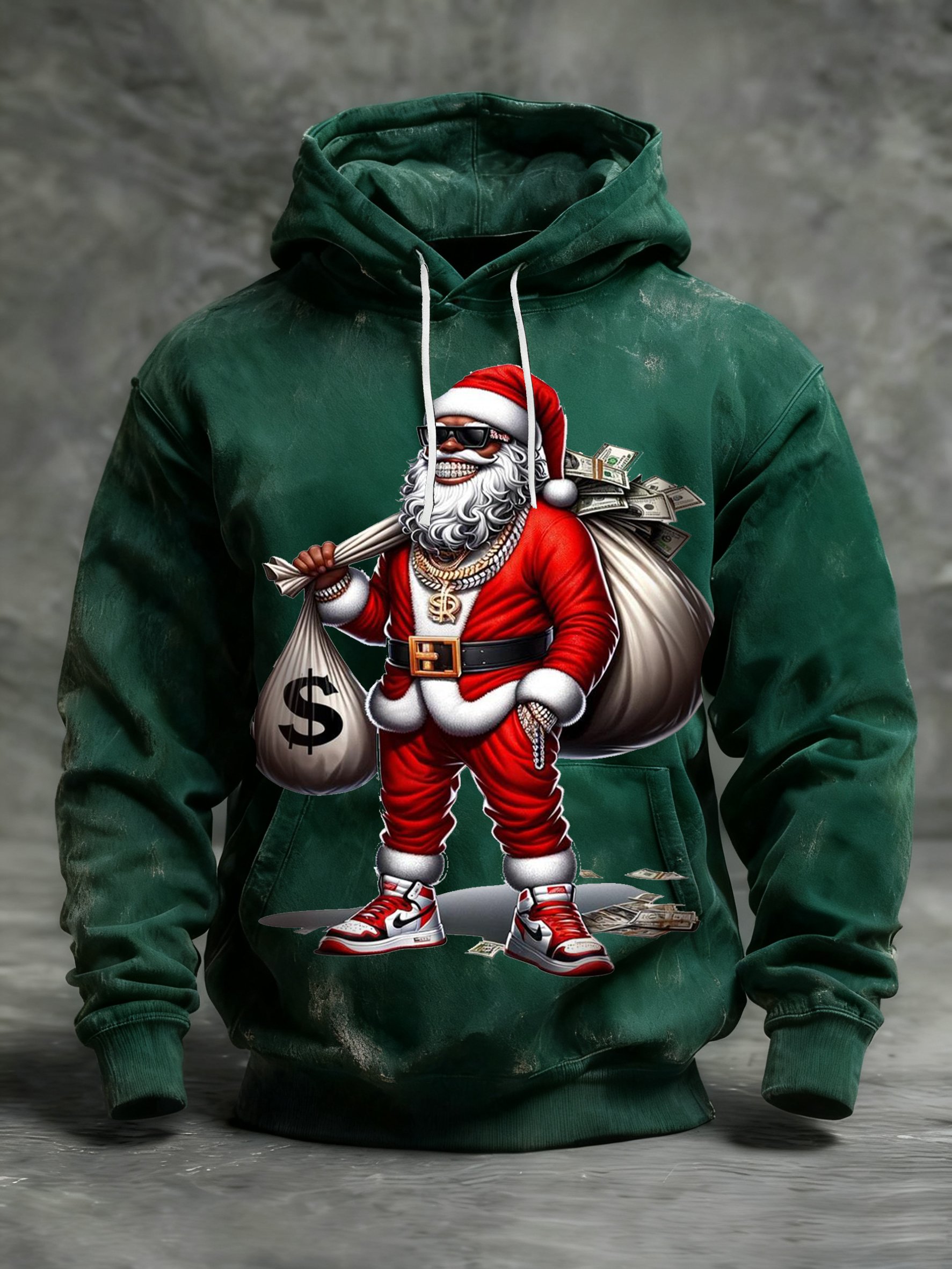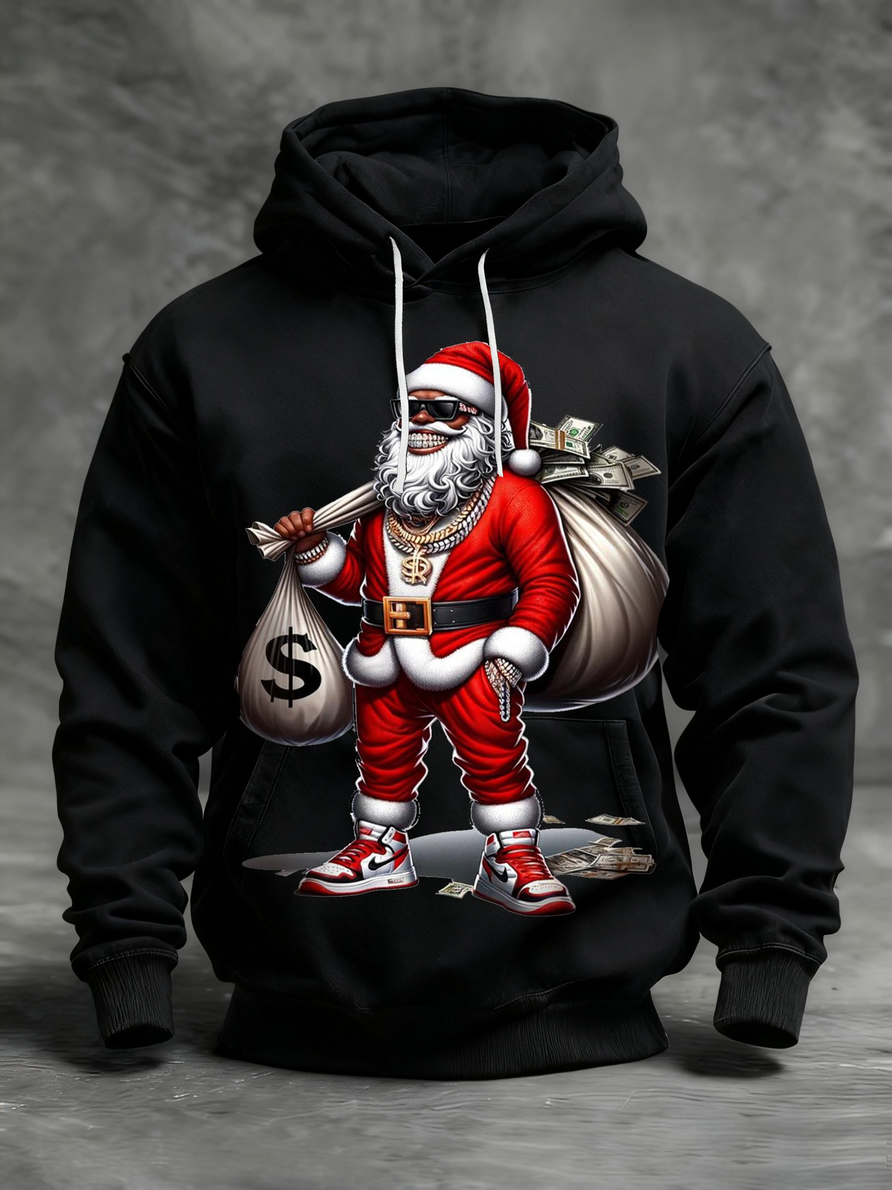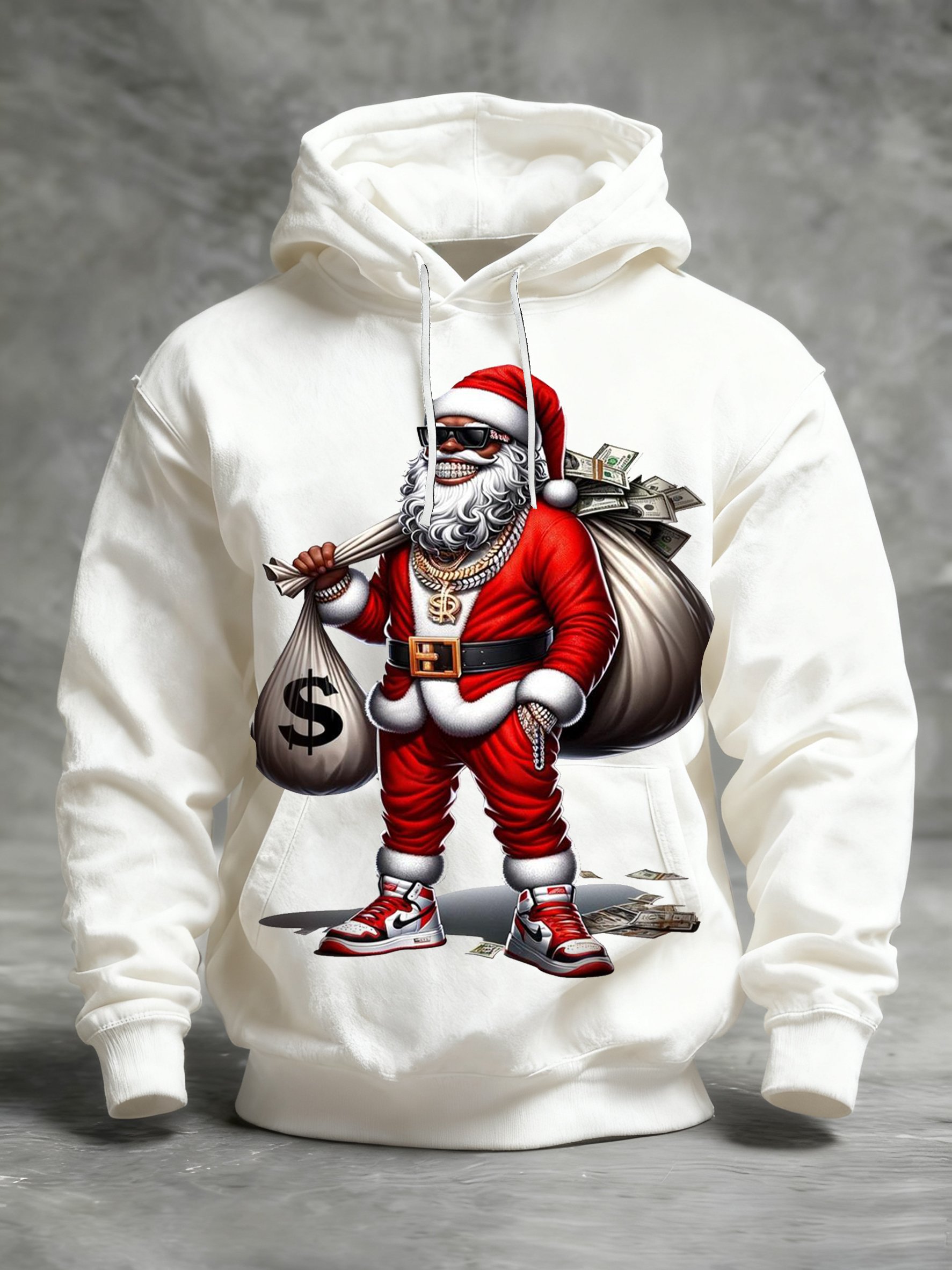 Men's African American Christmas Print Crew Neck Hooded Sweatshirt
