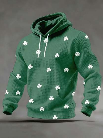 Men's St. Patrick Print Checkered Fabric Hooded Sweatshirt