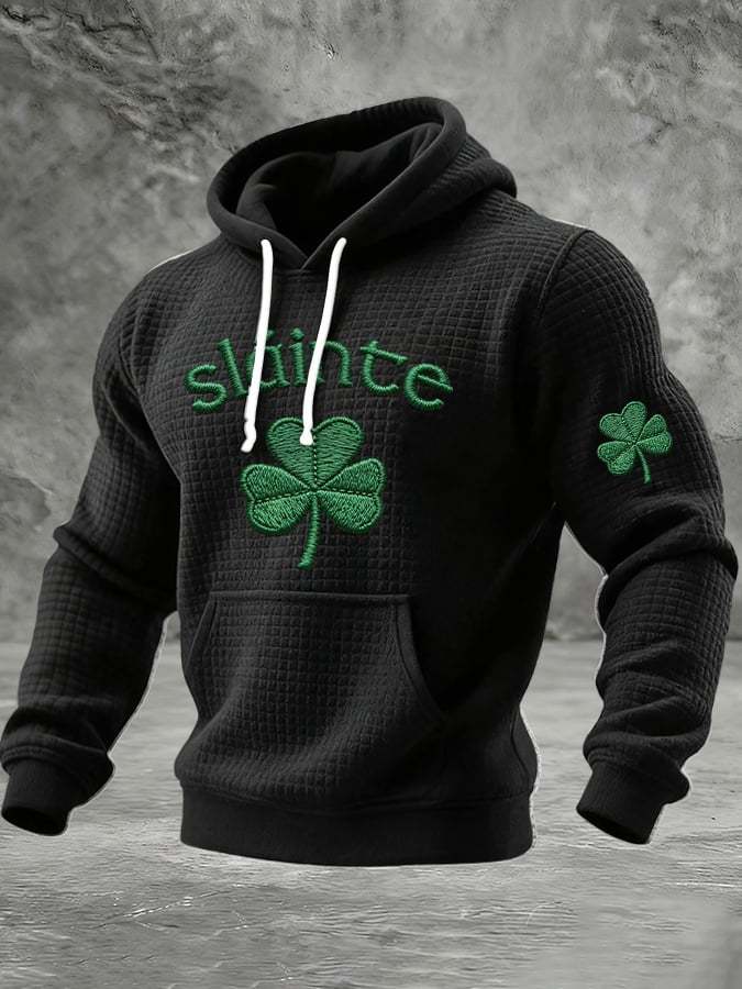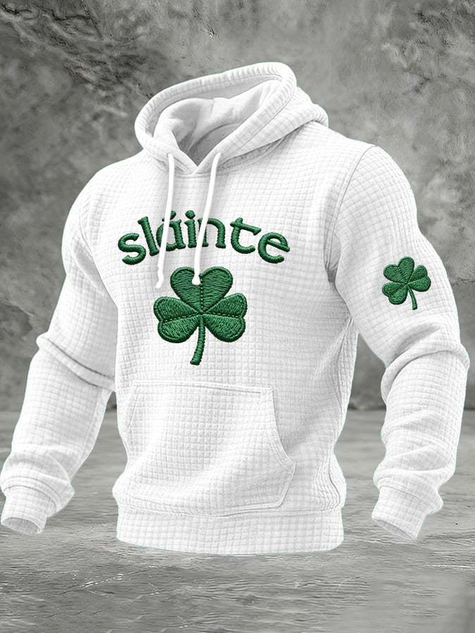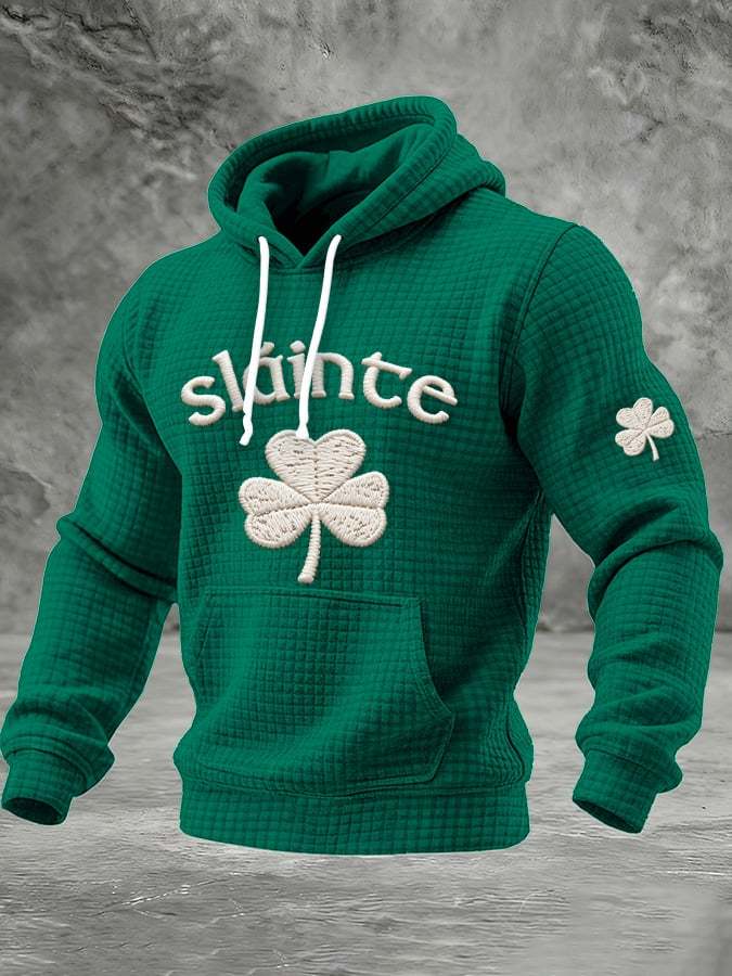 Men's St. Patrick Print Checkered Fabric Hooded Sweatshirt