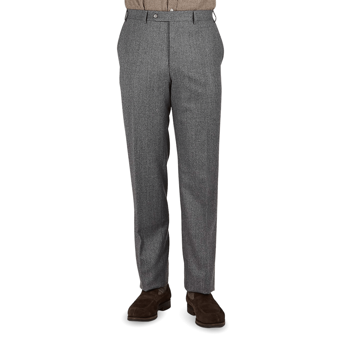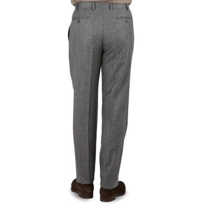 Mid Grey Wool Flannel Flat Front Trousers