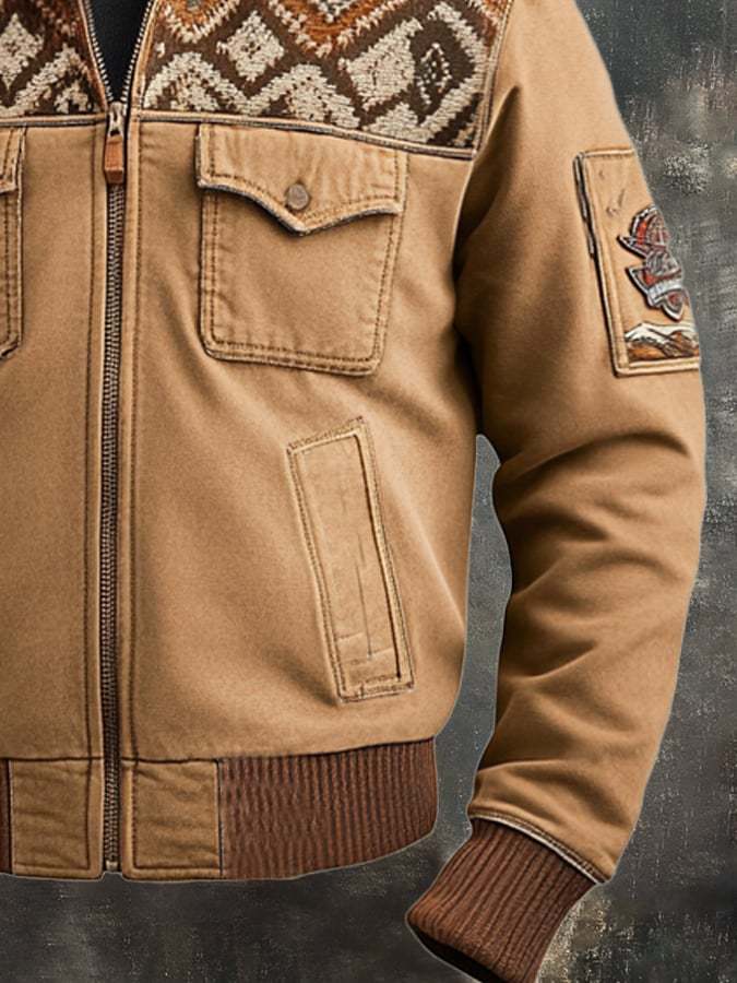 Men's Retro Classic Distressed Casual Fur Collar Pocket Jacket