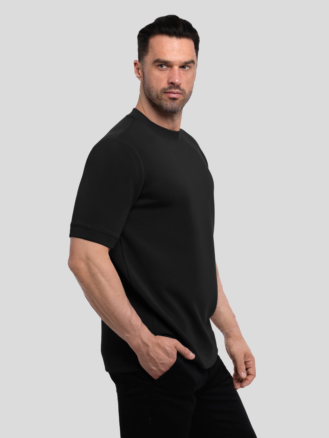 Durable LENZING™ Modal fabric, crafted with a thick, silk-like modal blend of modal, polyester, and spandex, gently hugs your skin and is engineered to retain its shape and color over time while offering a sleek feel and optimal stretch.