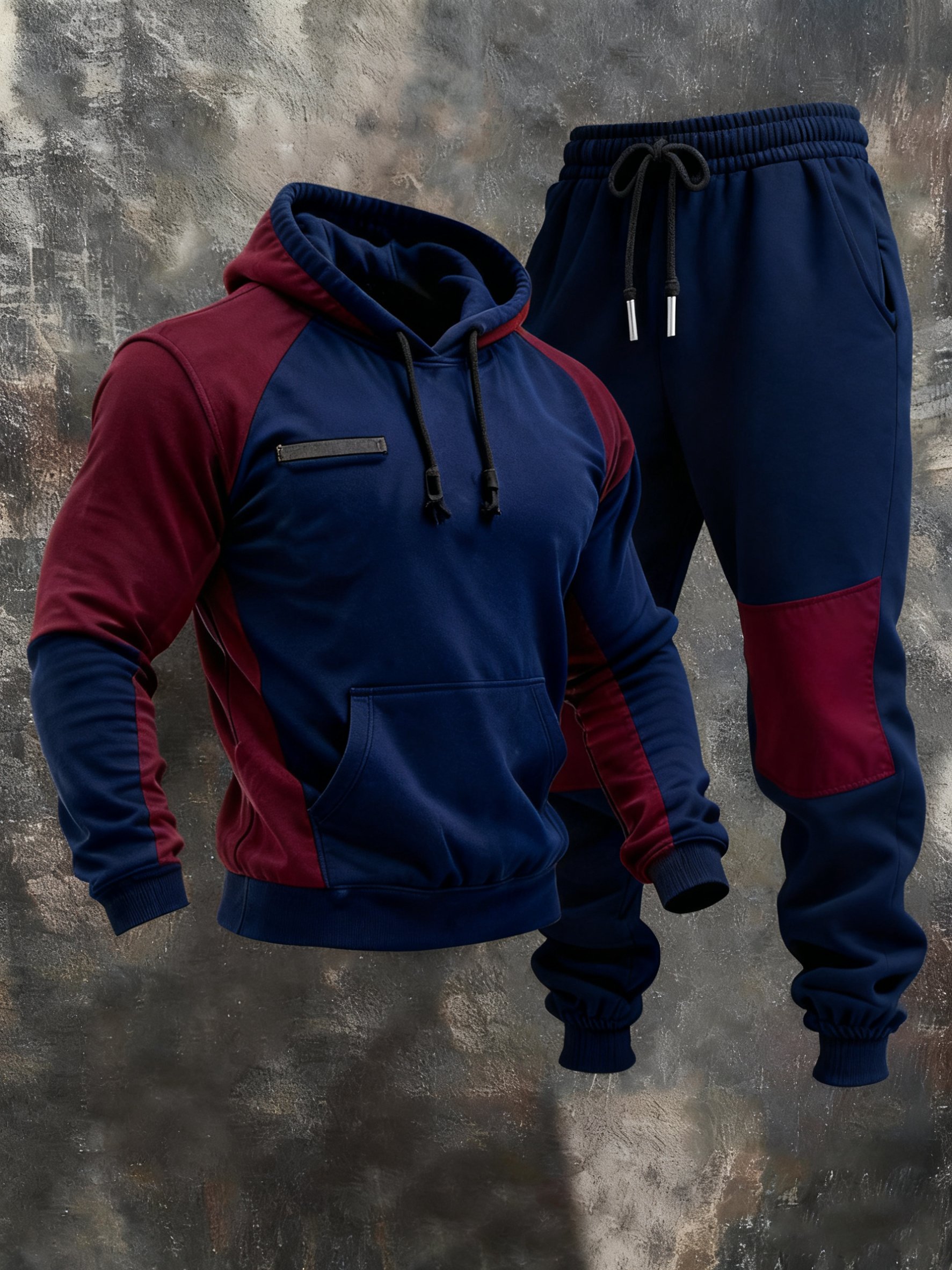 Men's Retro Stitching Contrast Color Hooded Casual Sweatshirt Suit