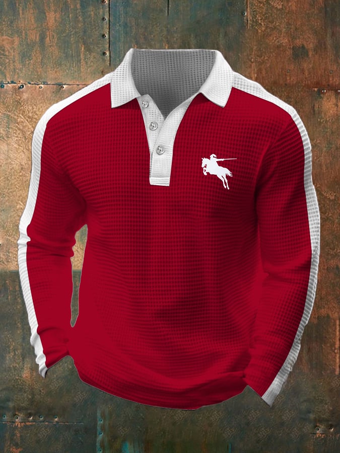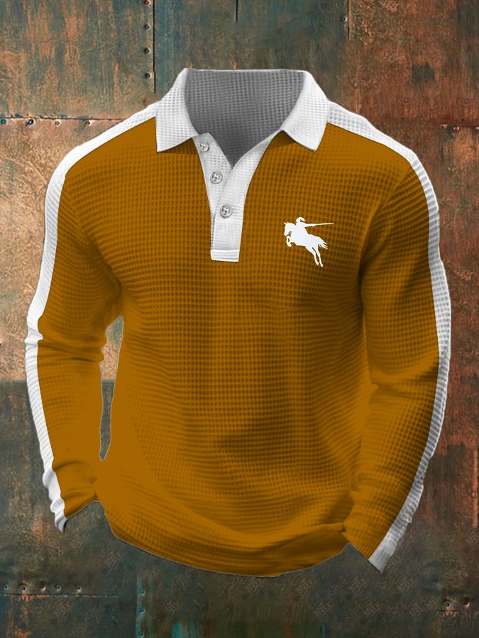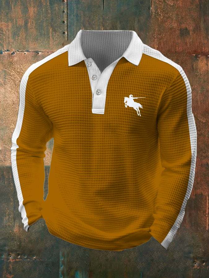 Men's Business Casual Waffle Fabric Long Sleeve Polo Shirt