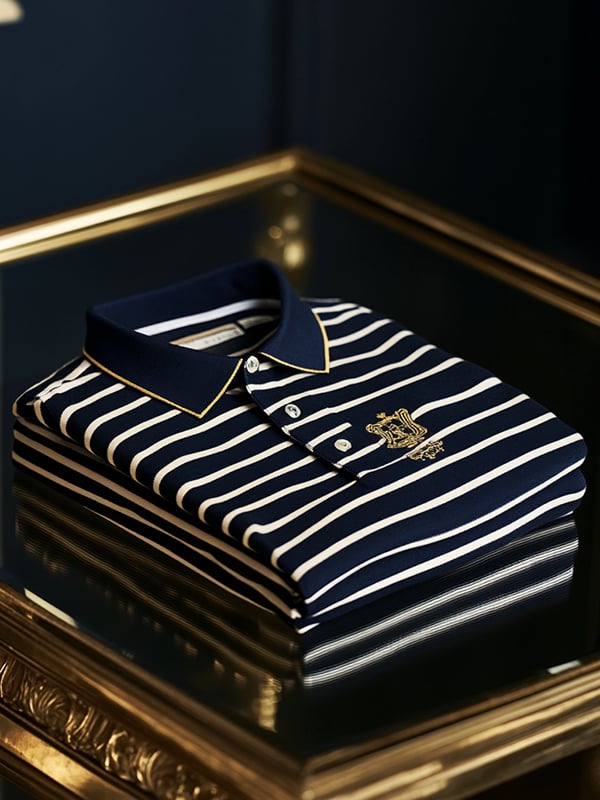 Men's Retro Business Stripe Print Long Sleeve Polo Shirt