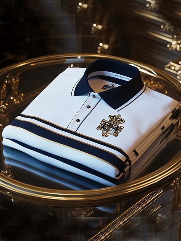 Men's Retro Business Stripe Print Long Sleeve Polo Shirt