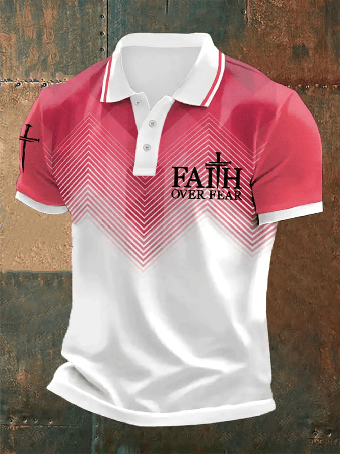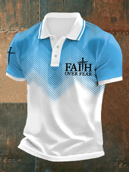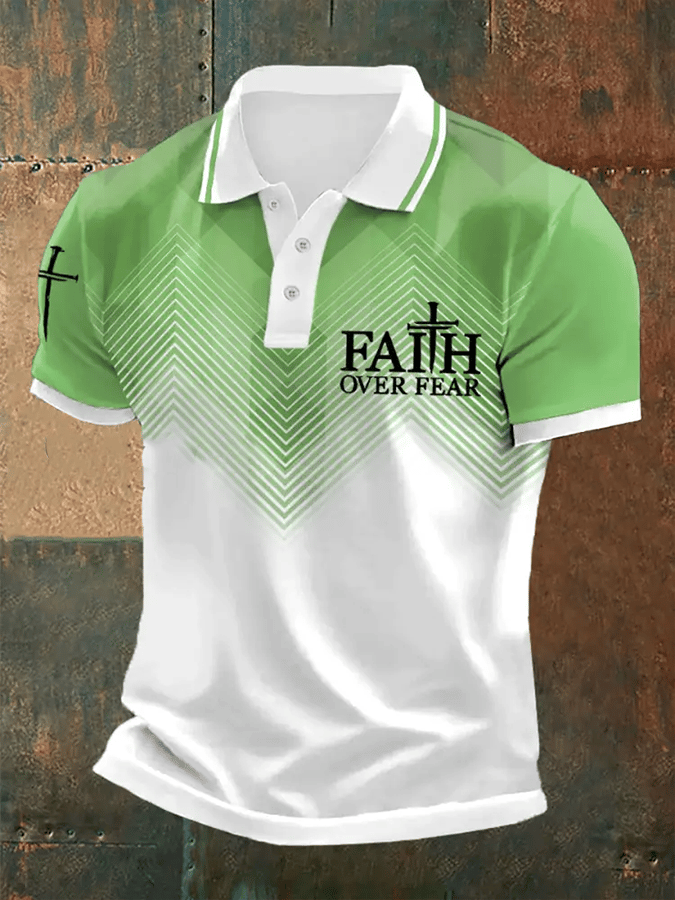 Men's Retro Faith “Faith Over Fear�? Casual Printed Polo Shirt