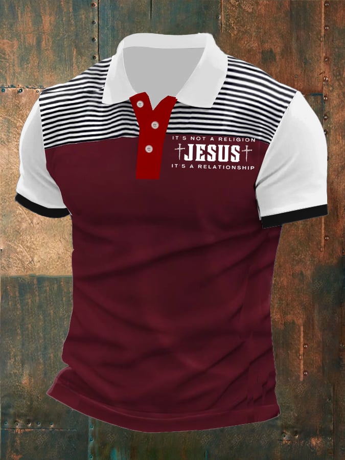 Men's Faith Printed Button Design Polo Shirt