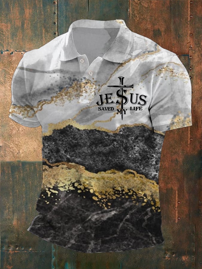 Men's Jesus Print Polo Shirt