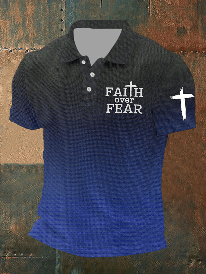 Men's Faith Over Fear Waffle Fabric Short Sleeve POLO T-Shirt