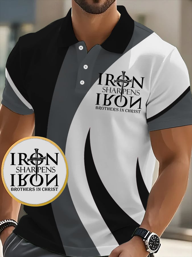 Men's Retro Faith “Iron Sharpens Iron Brothers In Christ�?Casual Printed Polo Shirt