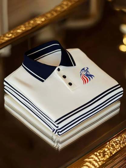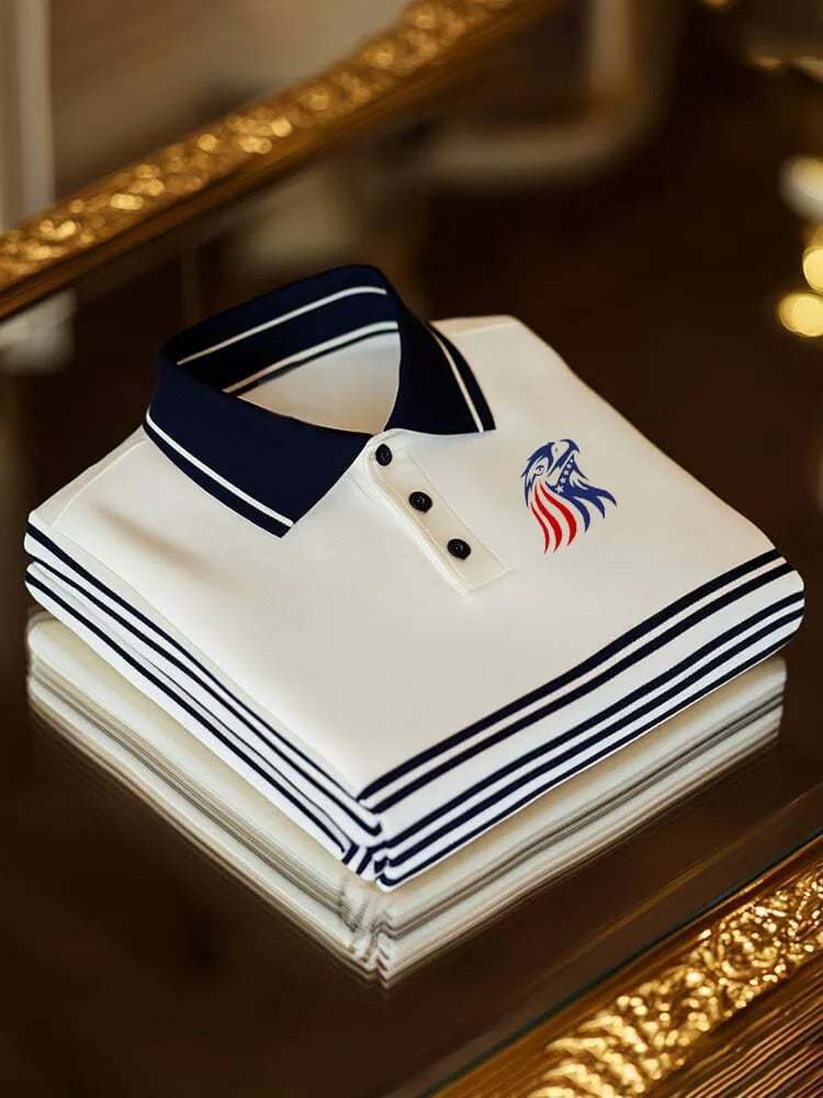 Men's Retro American Eagle Print Polo Shirt