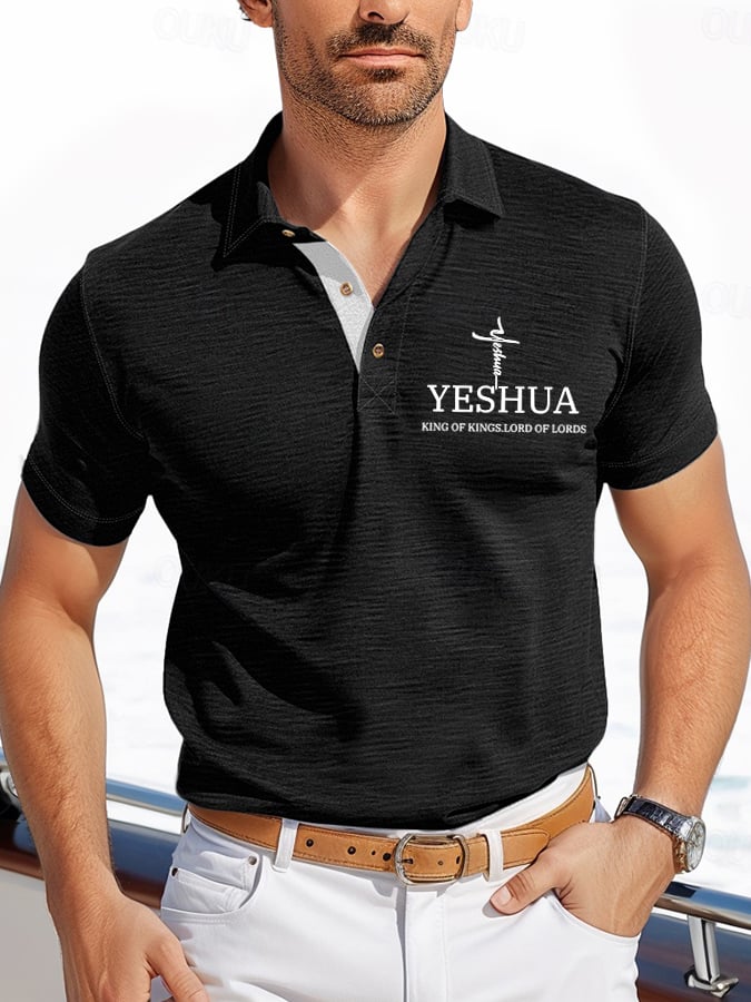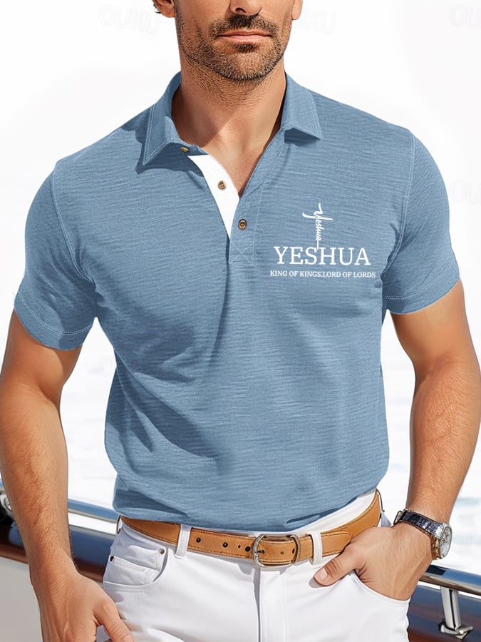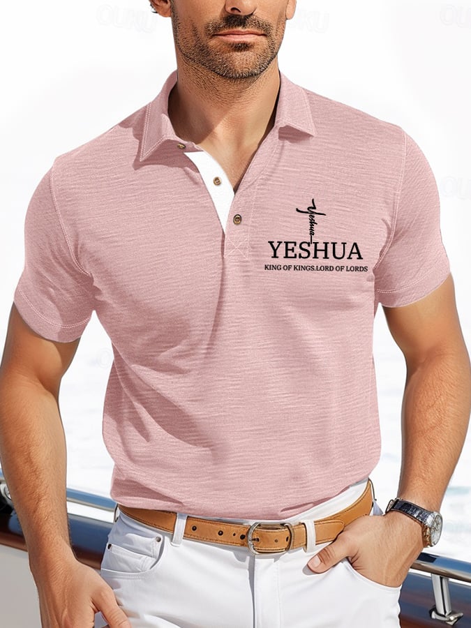 Men's Retro Faith “Yeshua King OF Kings Lord Of Lords�? Casual Printed Polo Shirt
