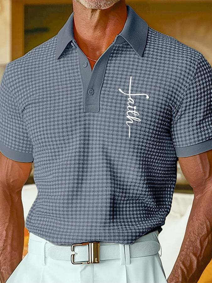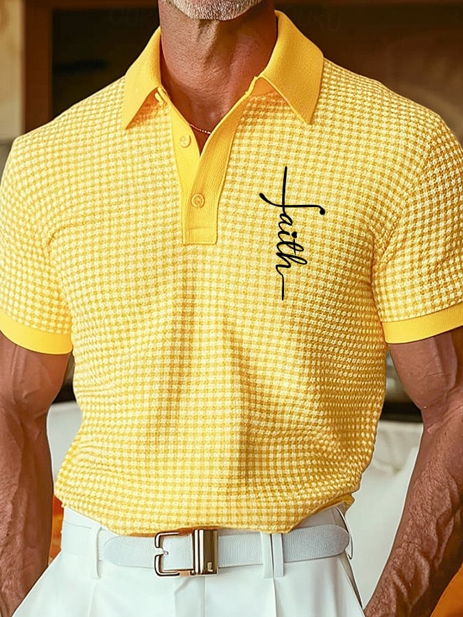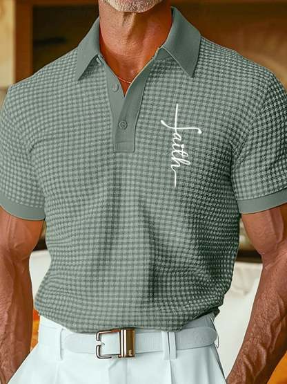 Men's Retro Faith Design Printed Comfortable And Breathable Casual Polo Shirt
