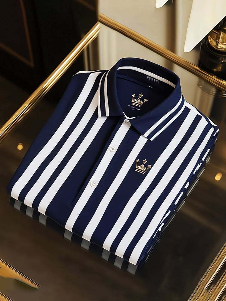 Men's Classic Business Logo Button Short Sleeve Polo Shirt