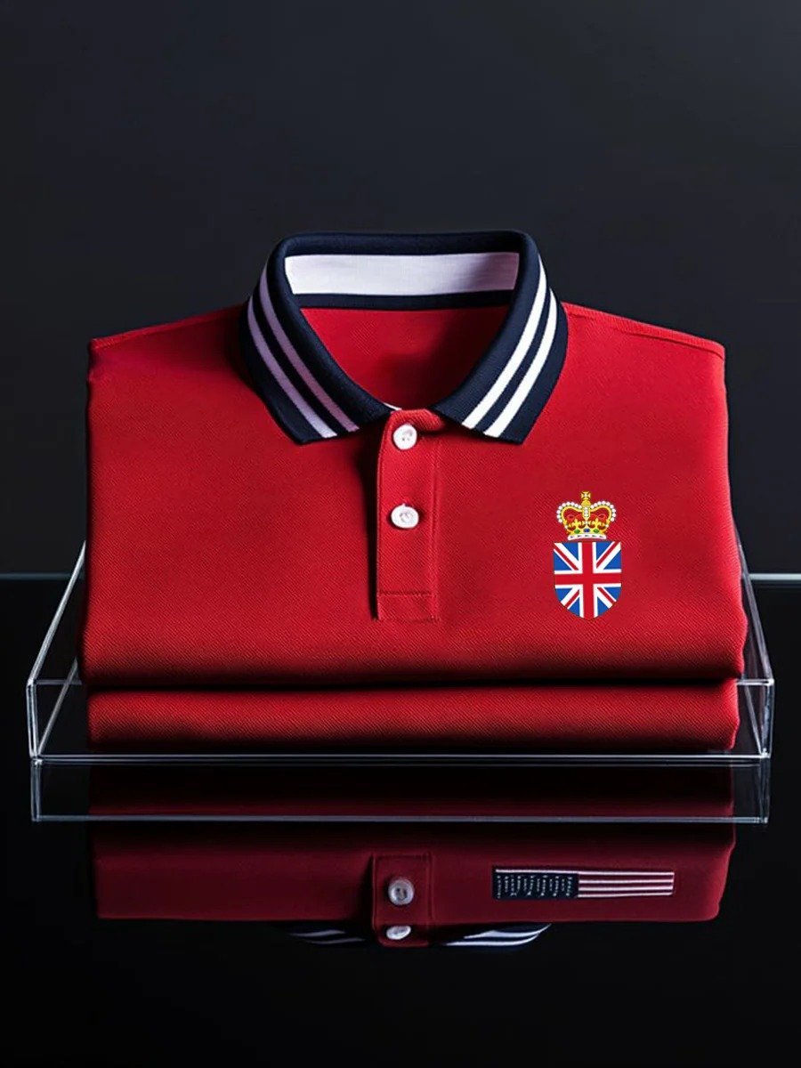 Men's Business Union Jack Casual Button Short Sleeve Polo Shirt