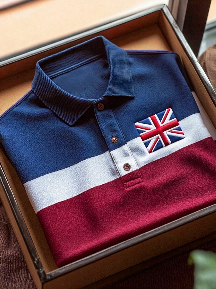 Men's Business Casual Union Jack Button Short Sleeve Polo Shirt