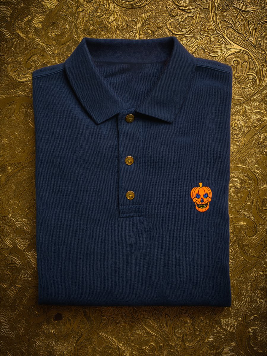 Men's Casual Business Halloween Pumpkin Art Button Short Sleeve Polo Shirt
