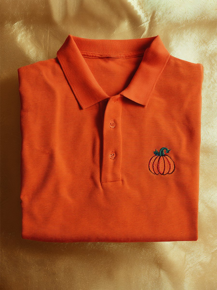 Men's Casual Business Halloween Pumpkin Art Button Short Sleeve Polo Shirt