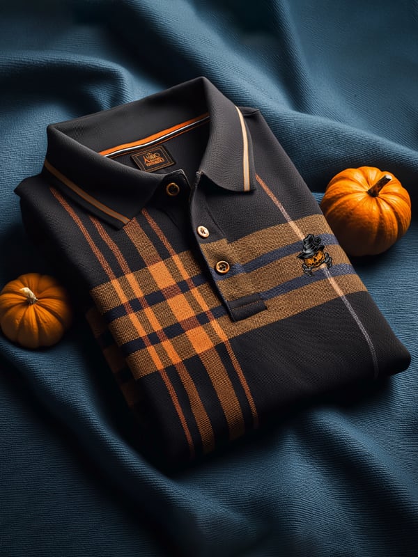 Men's Halloween Check Casual Short Sleeve Polo Shirt