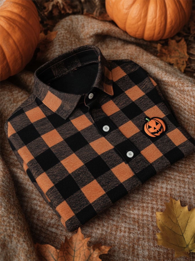 Men's Halloween Plaid Pumpkin Casual Print Polo Shirt