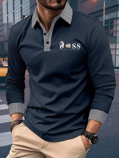 Men's Retro Business Print Long Sleeve Polo Shirt