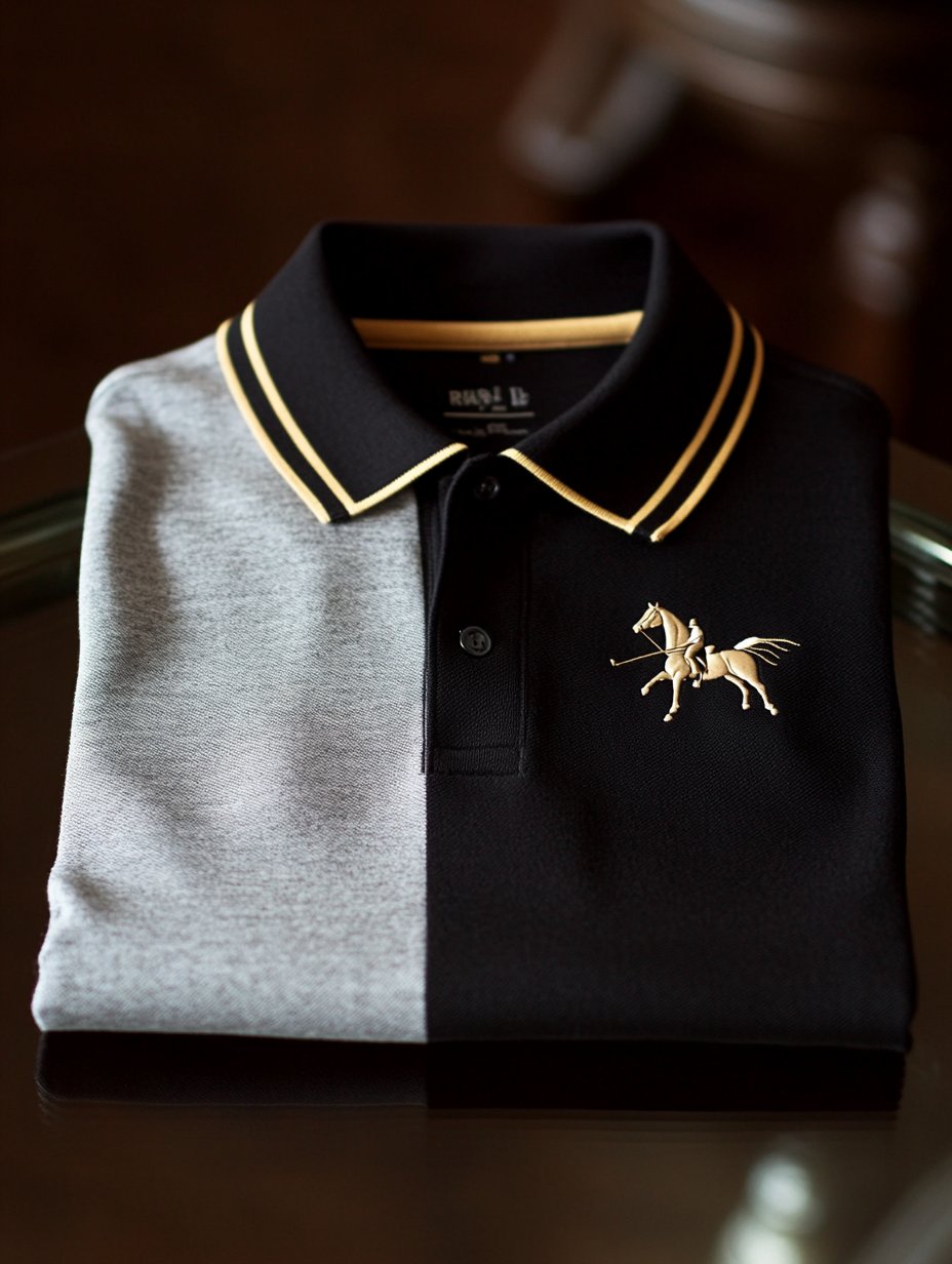 Men's Retro Business logo Print Long Sleeve Polo Shirt