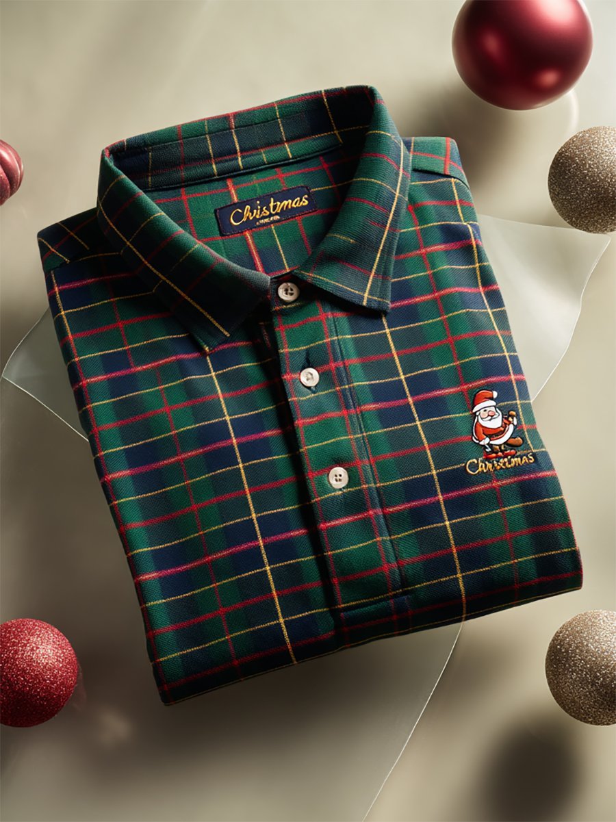 Men's Christmas Plaid Long Sleeve Polo Shirt