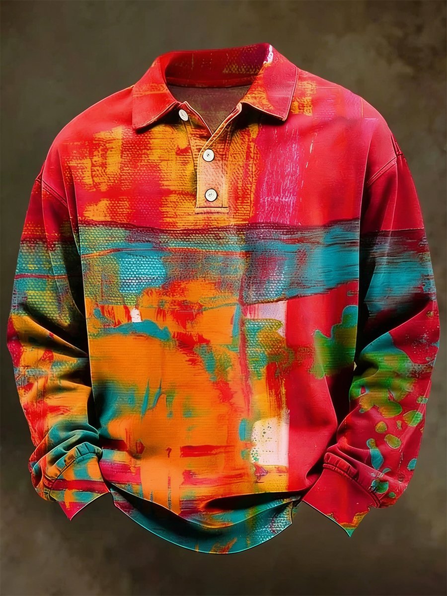 Men's Retro Faith Oil Painting Art Long-Sleeved Polo Shirt