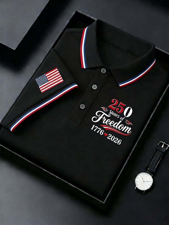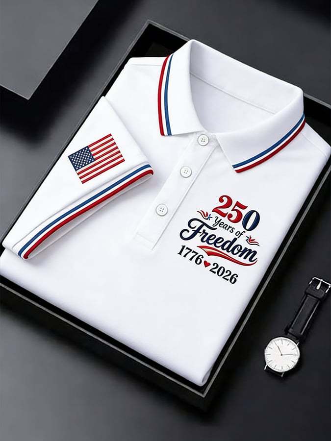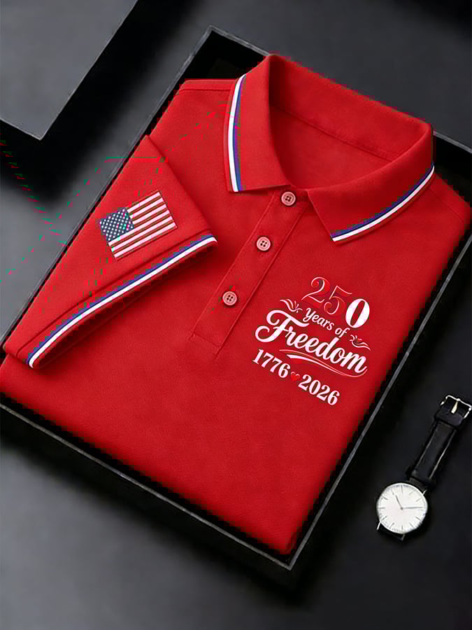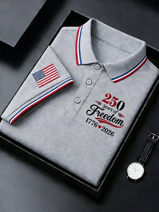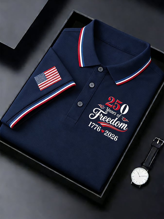 Men's Retro 250th Anniversary of the United States Print Independence Day Cross Print Polo Shirt