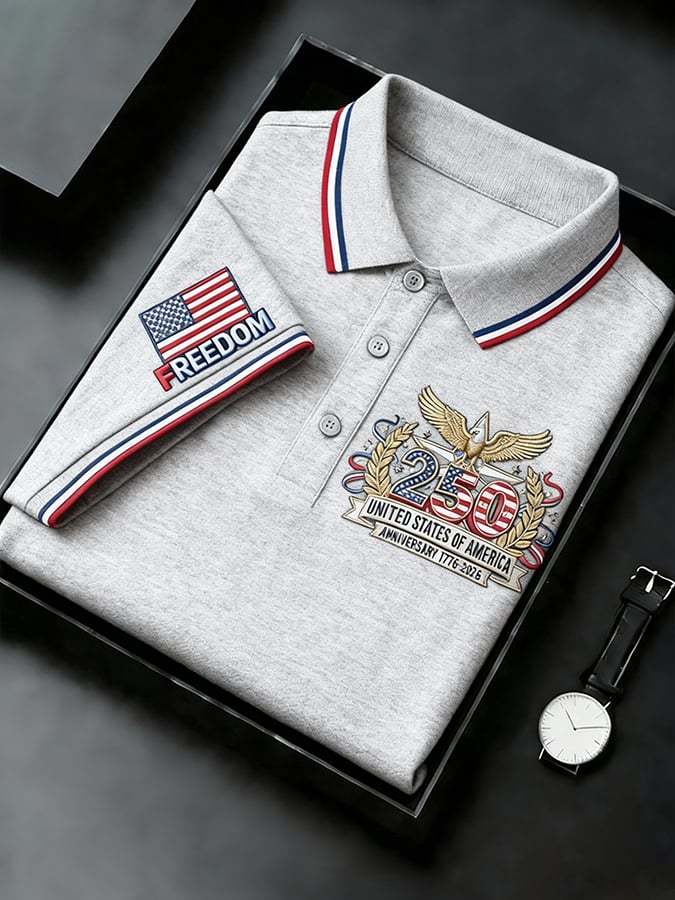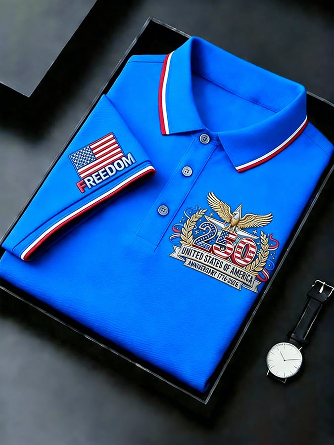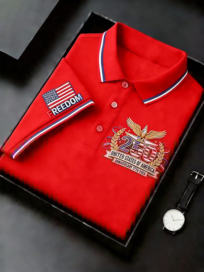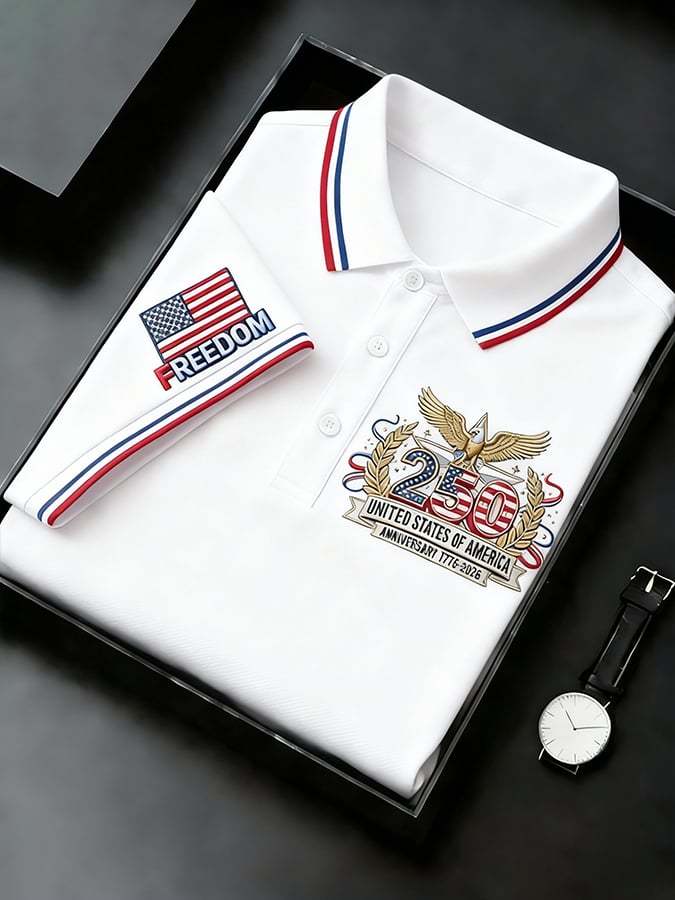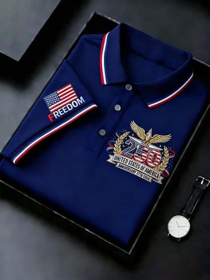 Men's Retro 250th Anniversary of the United States Print Independence Day Cross Print Polo Shirt