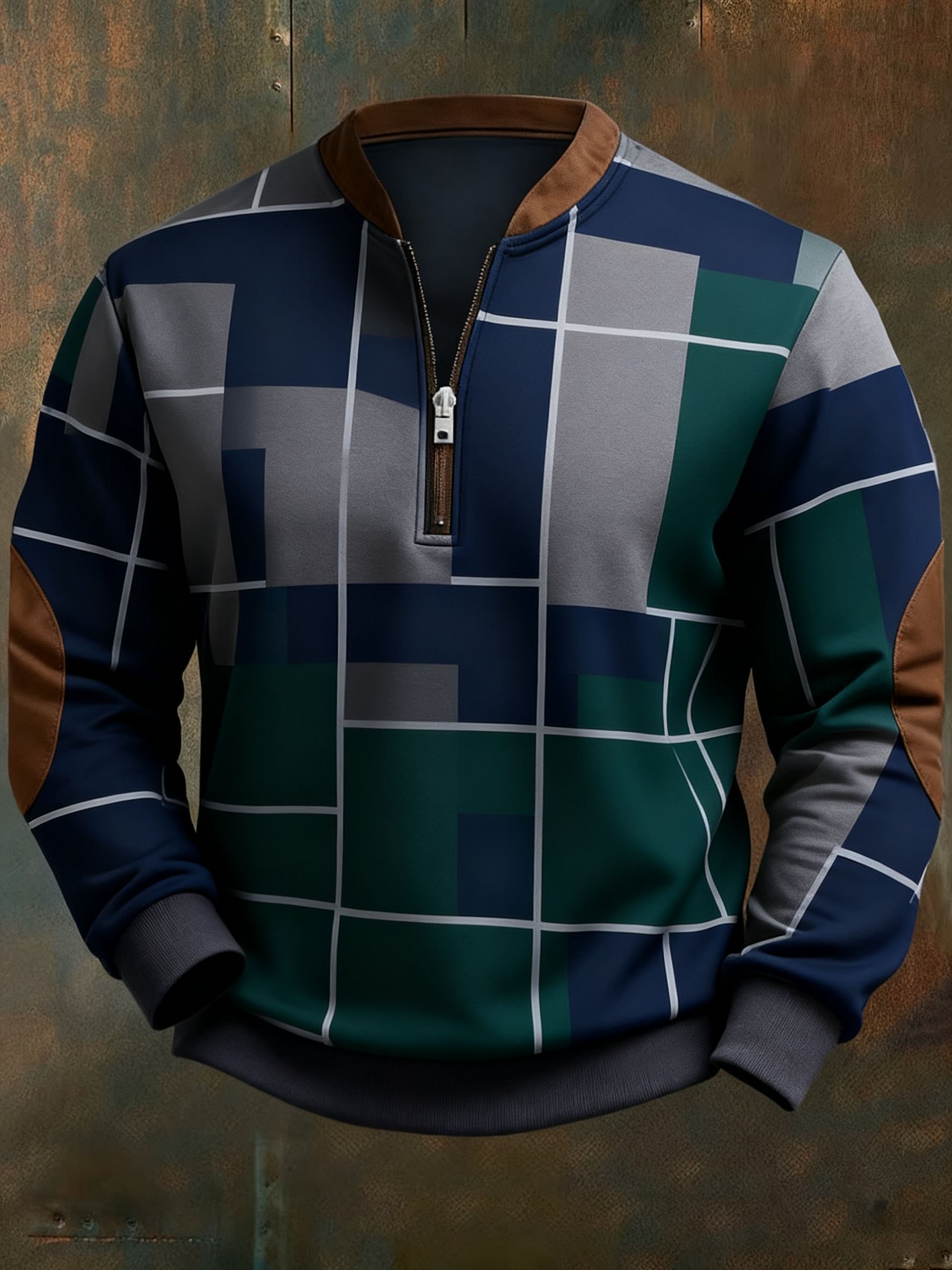 Men's Casual Geometric Color Block Print Sweatshirt