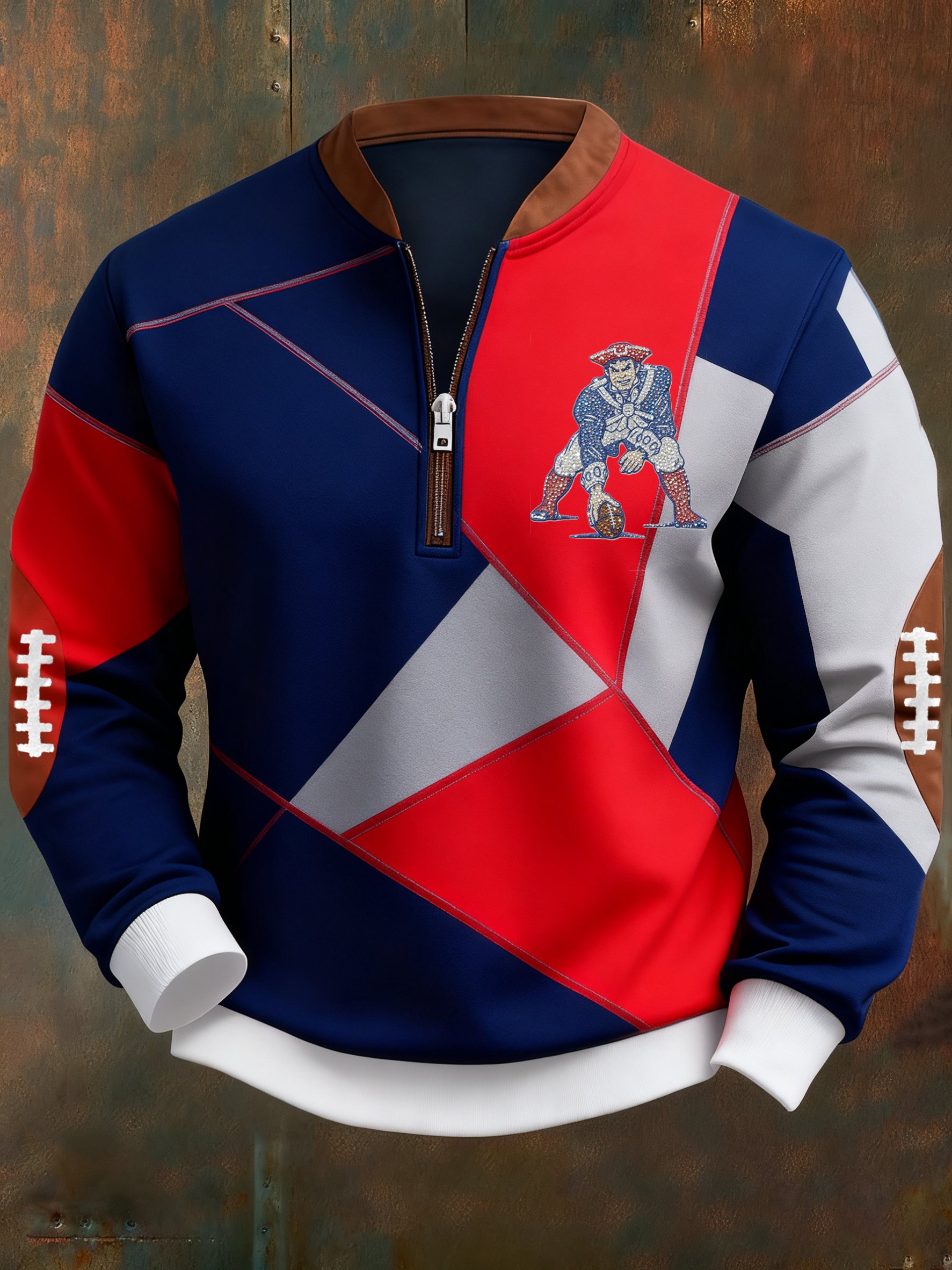 Men's Football Geometric Color Block Print Sweatshirt