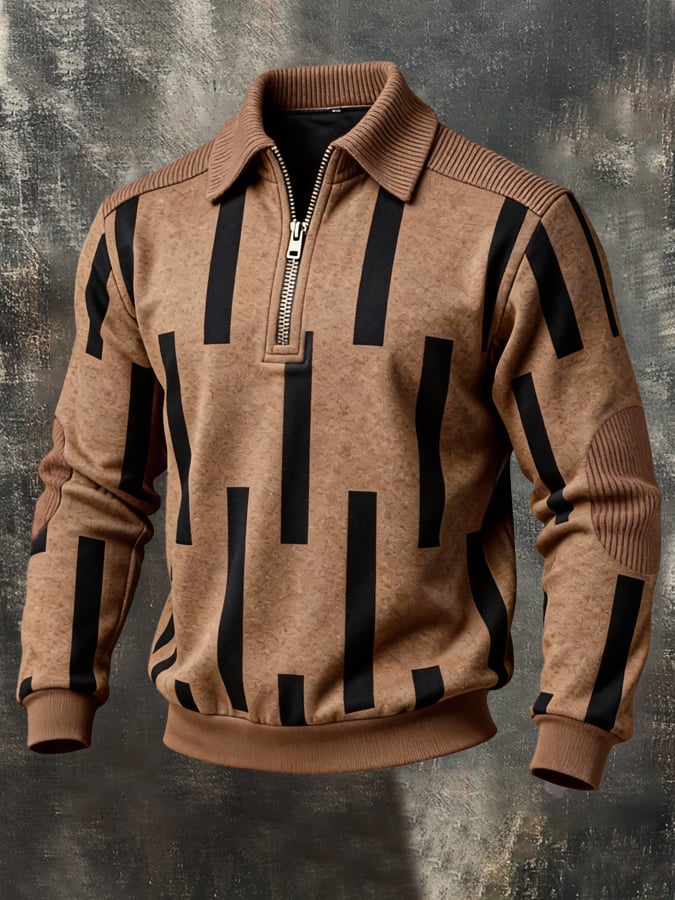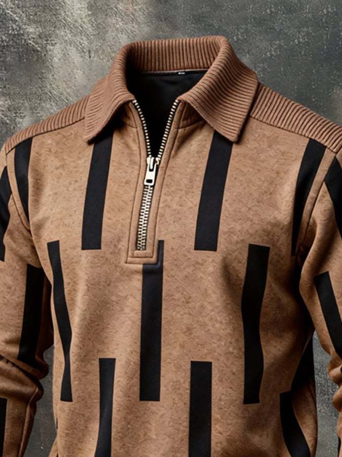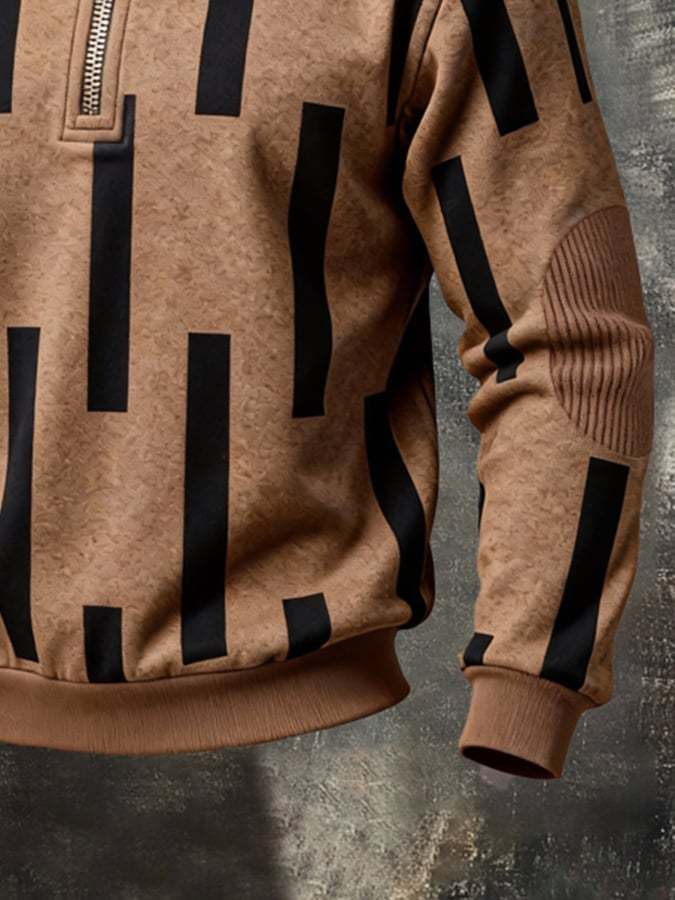 Men's Retro Color Block Print Color-Blocked Zip-Up Sweatshirt