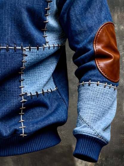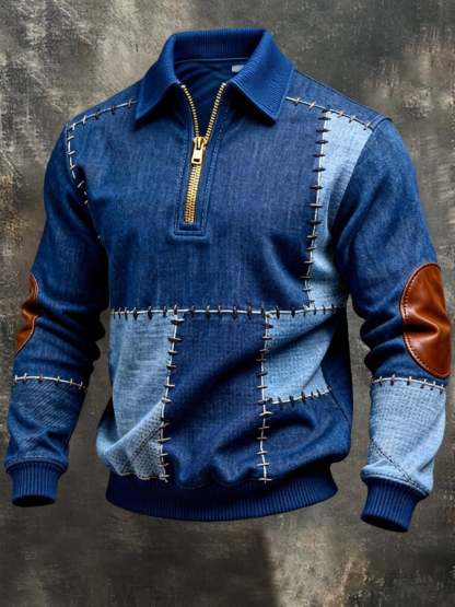 Men's Vintage Color-Block Printed Zip-Up Hoodie