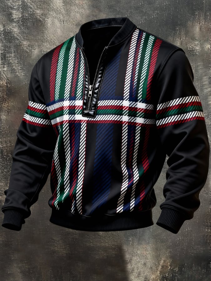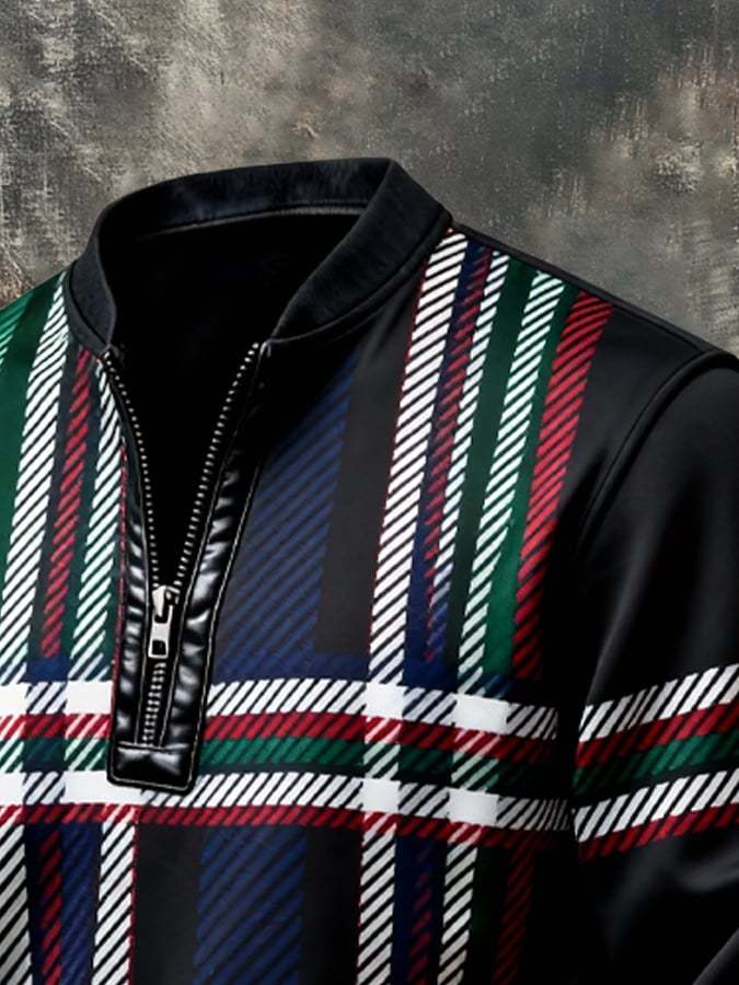 Men's Vintage Color-Block Printed Zip-Up Hoodie